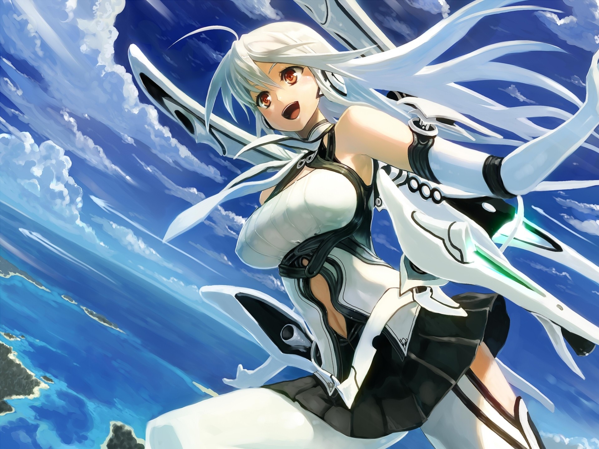 Kennungen:langes haar, wolken, weißes haar, rote augen
