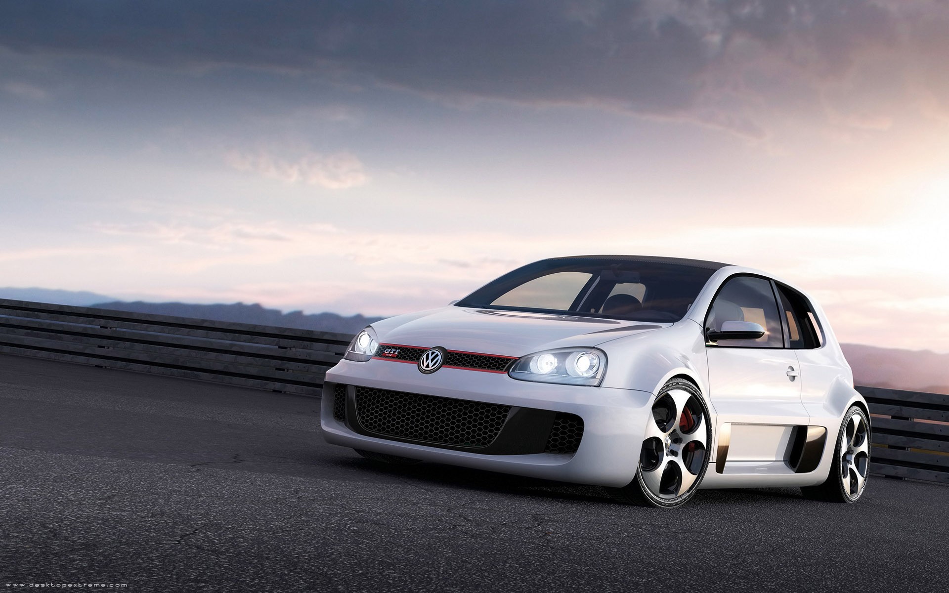 Weißer Volkswagen auf Sonnenuntergang Hintergrund - desktop-Hintergrund