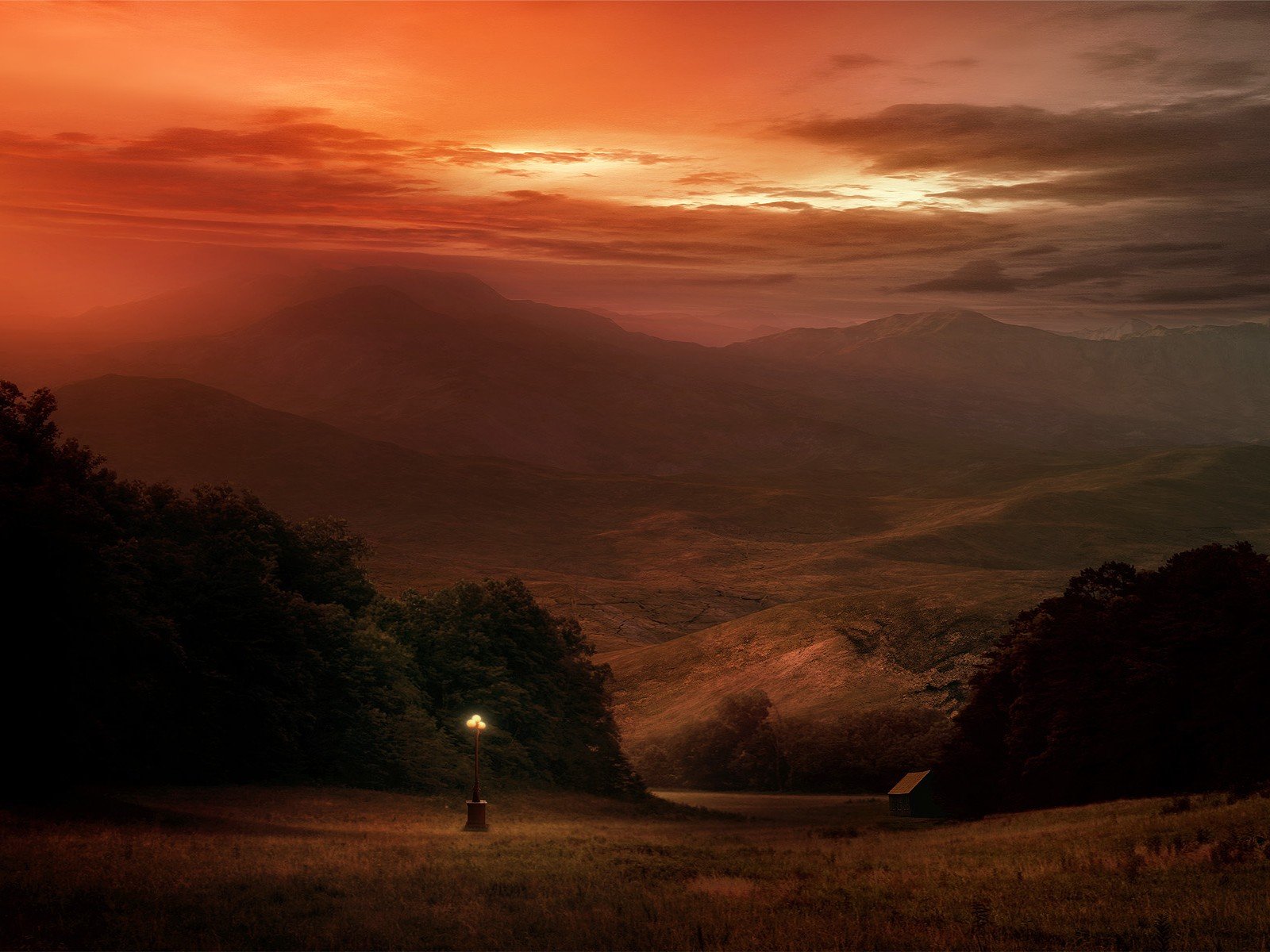 Einsame Laterne auf dem Hintergrund der schönen Berge - wallpaper für das Telefon