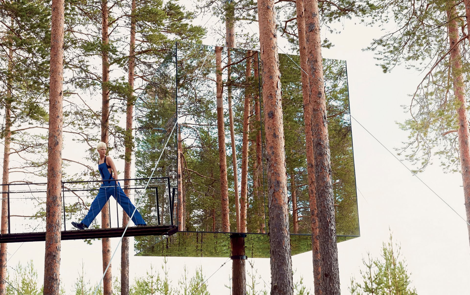Kennungen:karlie kloss, wald, kiefer, spiegelwürfel, mode