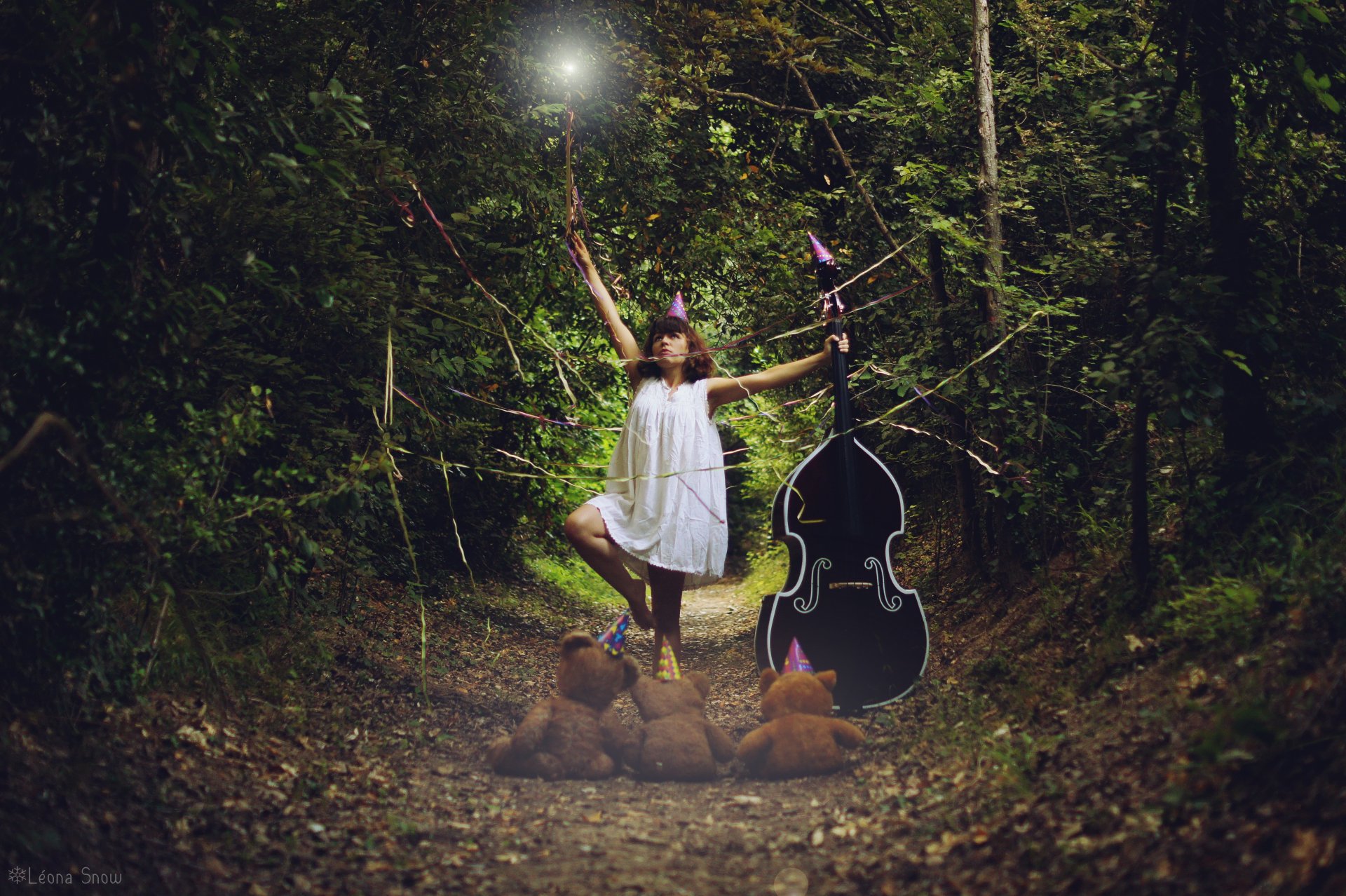 mädchen stofftiere bären wald kontrabass konzert zuschauer