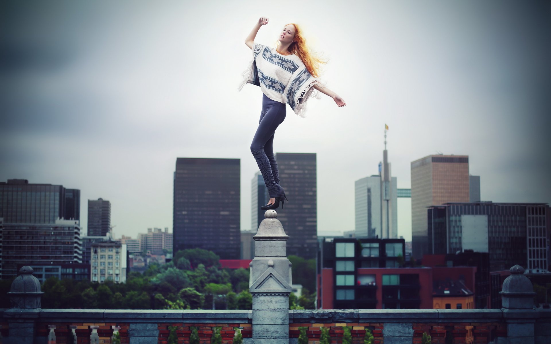 Rothaarige schlanke Mädchen steht auf Ihrem Höhepunkt - wallpaper für das Telefon