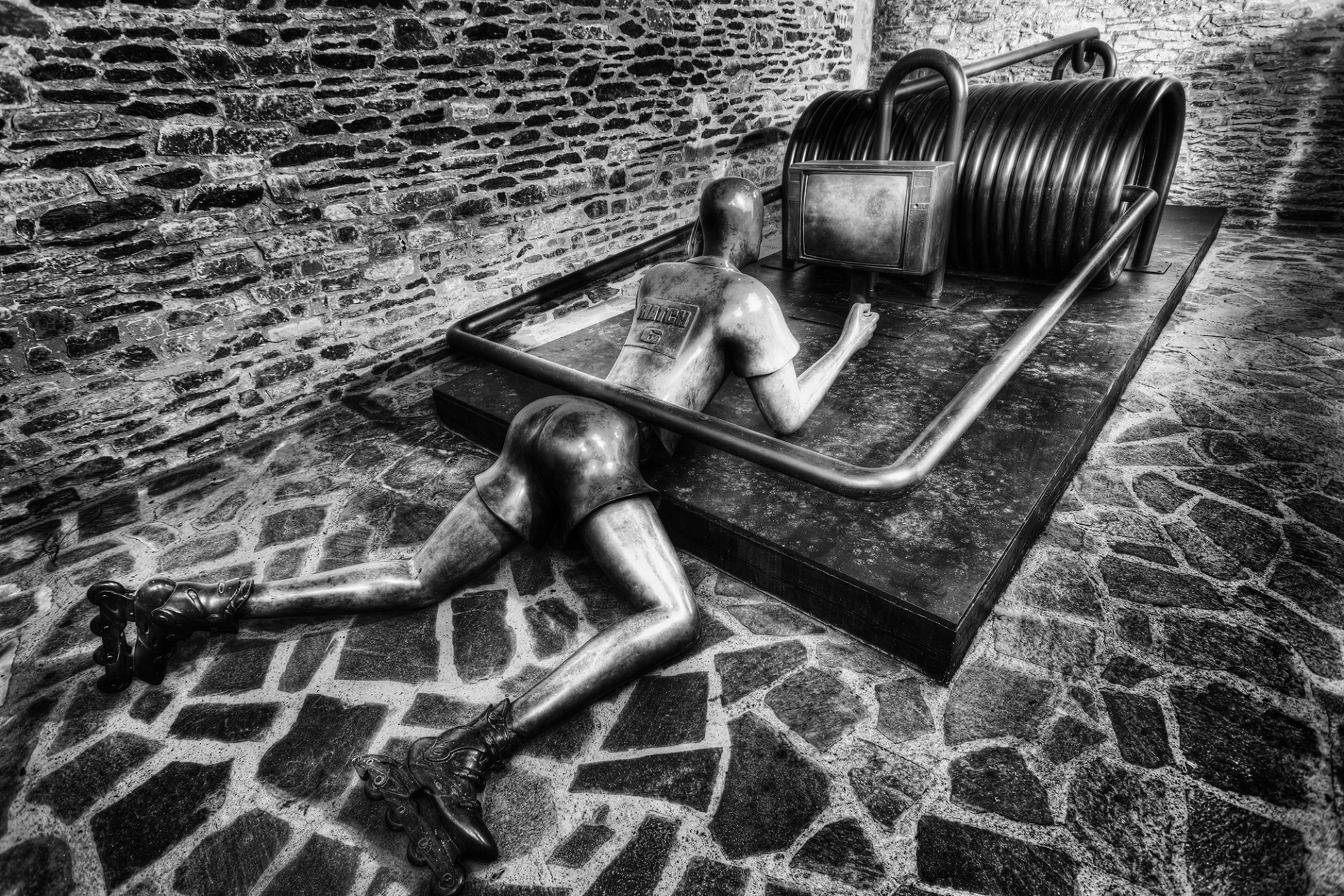 Skulptur eines Mannes, der in eine Mausefalle geraten ist - wallpaper für das Telefon