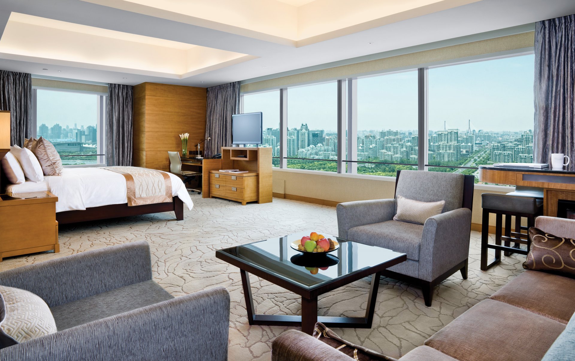 Das Innere des Wohnzimmers in der Wohnung mit Panoramafenstern - desktop-Hintergrund