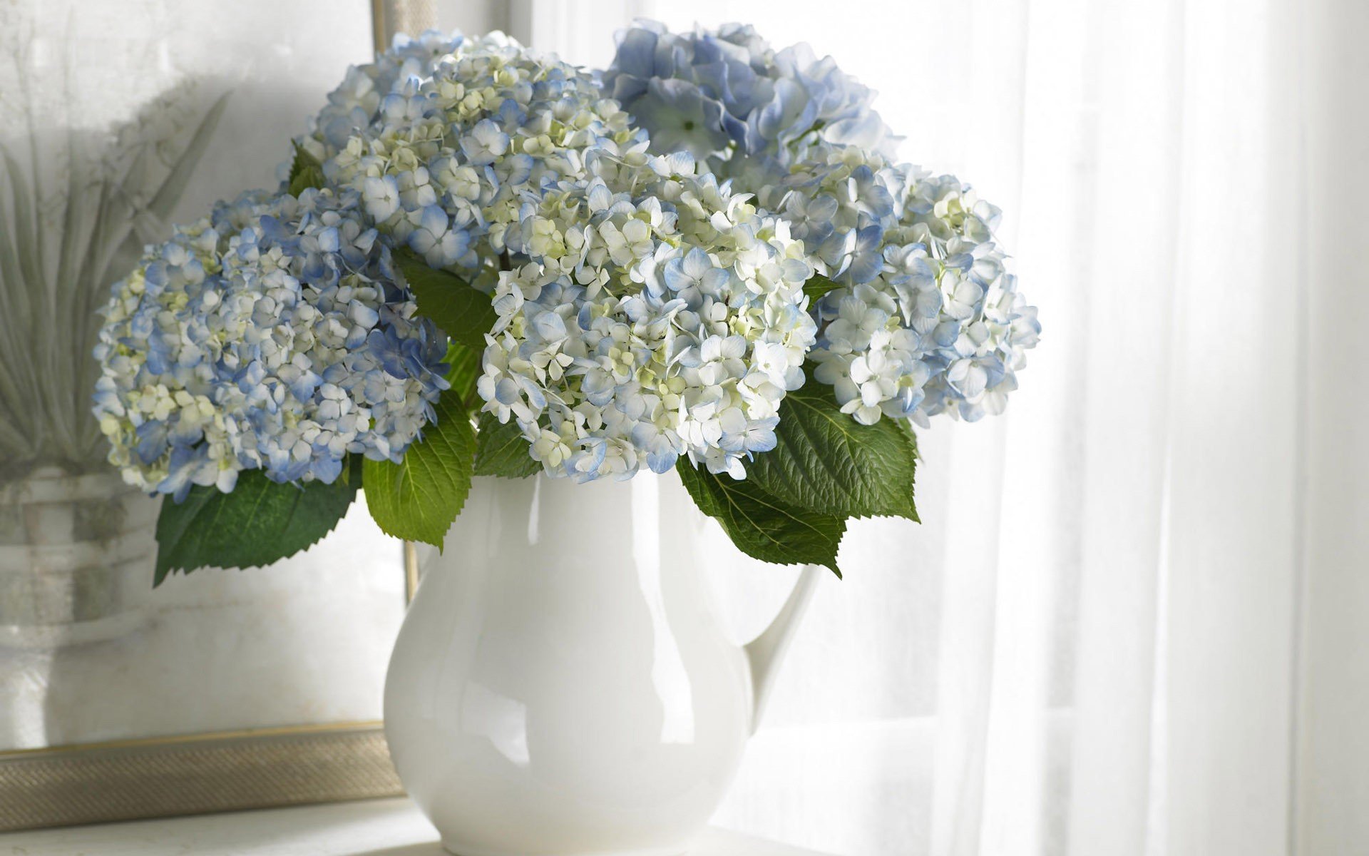 Weiße Vase mit Hortensienstrauß - desktop-Hintergrund