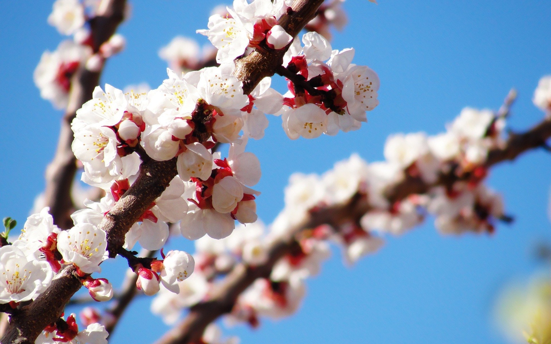 Zweige eines blühenden Obstbaums auf einem blauen Himmelshintergrund - desktop-Hintergrund