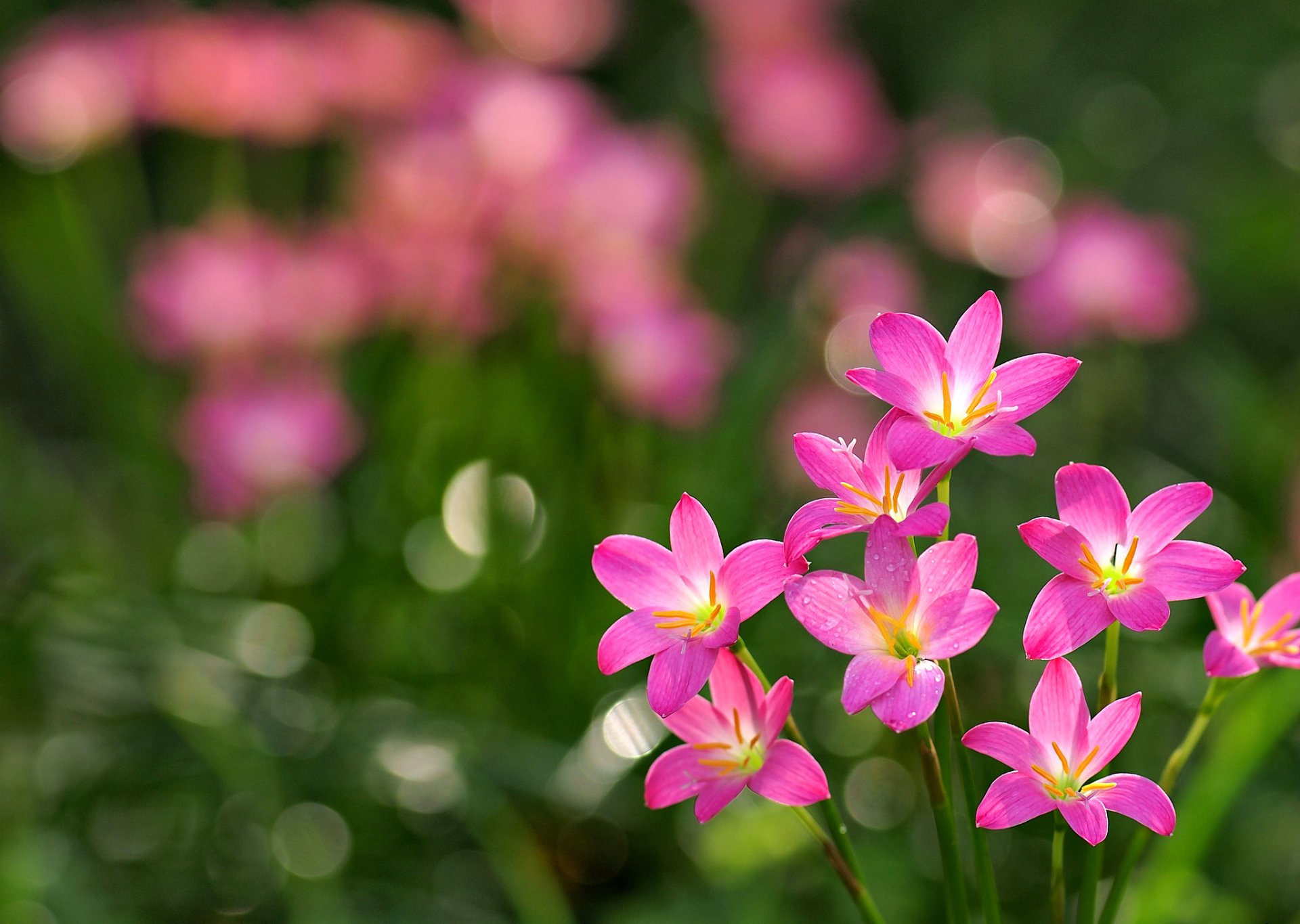 Kennungen:blumen, gras, bokeh, blütenblätter, rosa blüten
