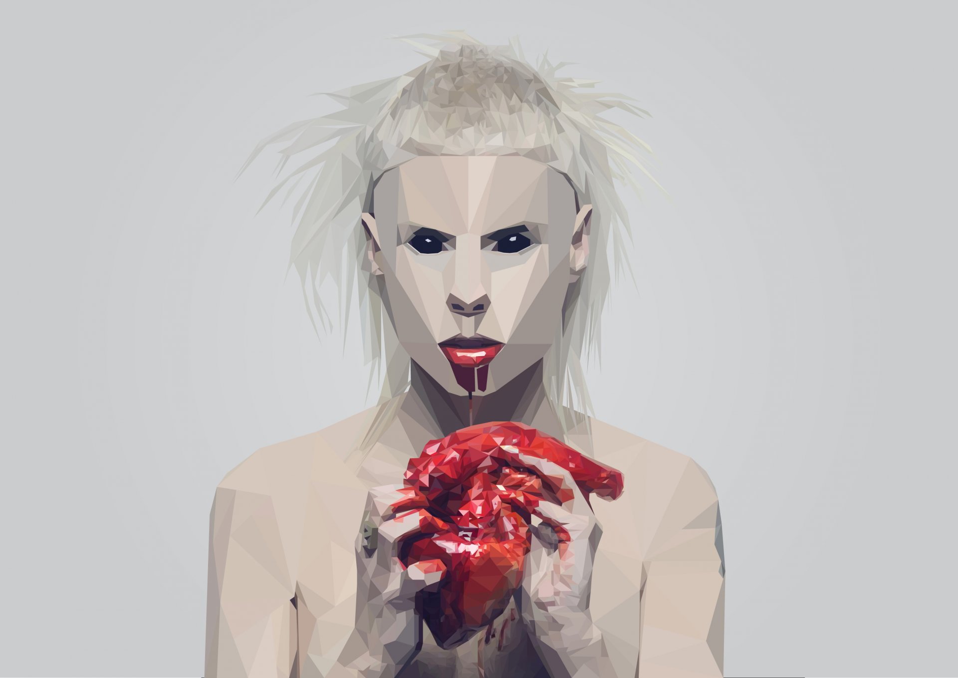 Handgezeichnete, stilisierte blondine isst ein blutiges herz - desktop-Hintergrund