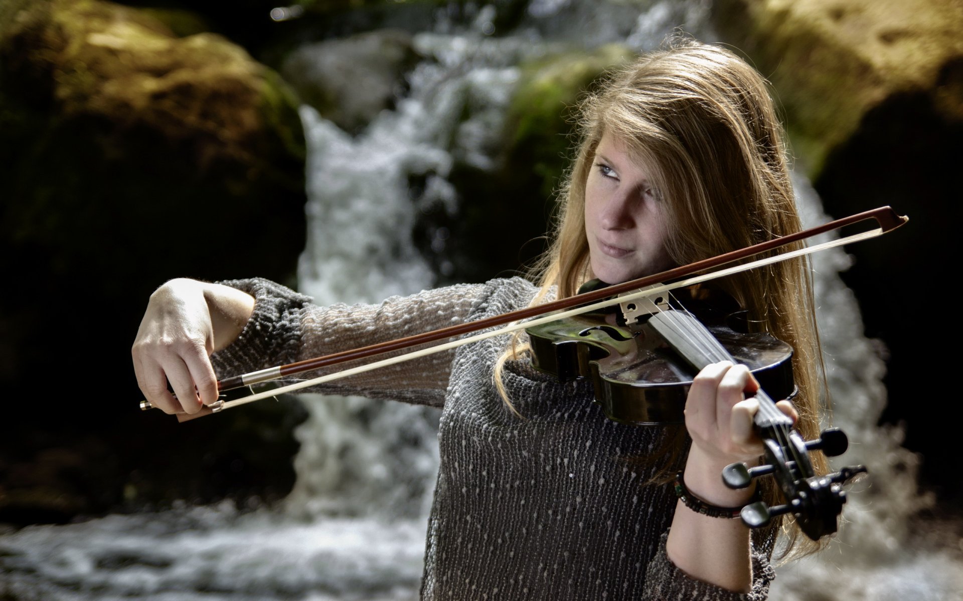 Mädchen mit langen Haaren spielt Geige - wallpaper für das Telefon