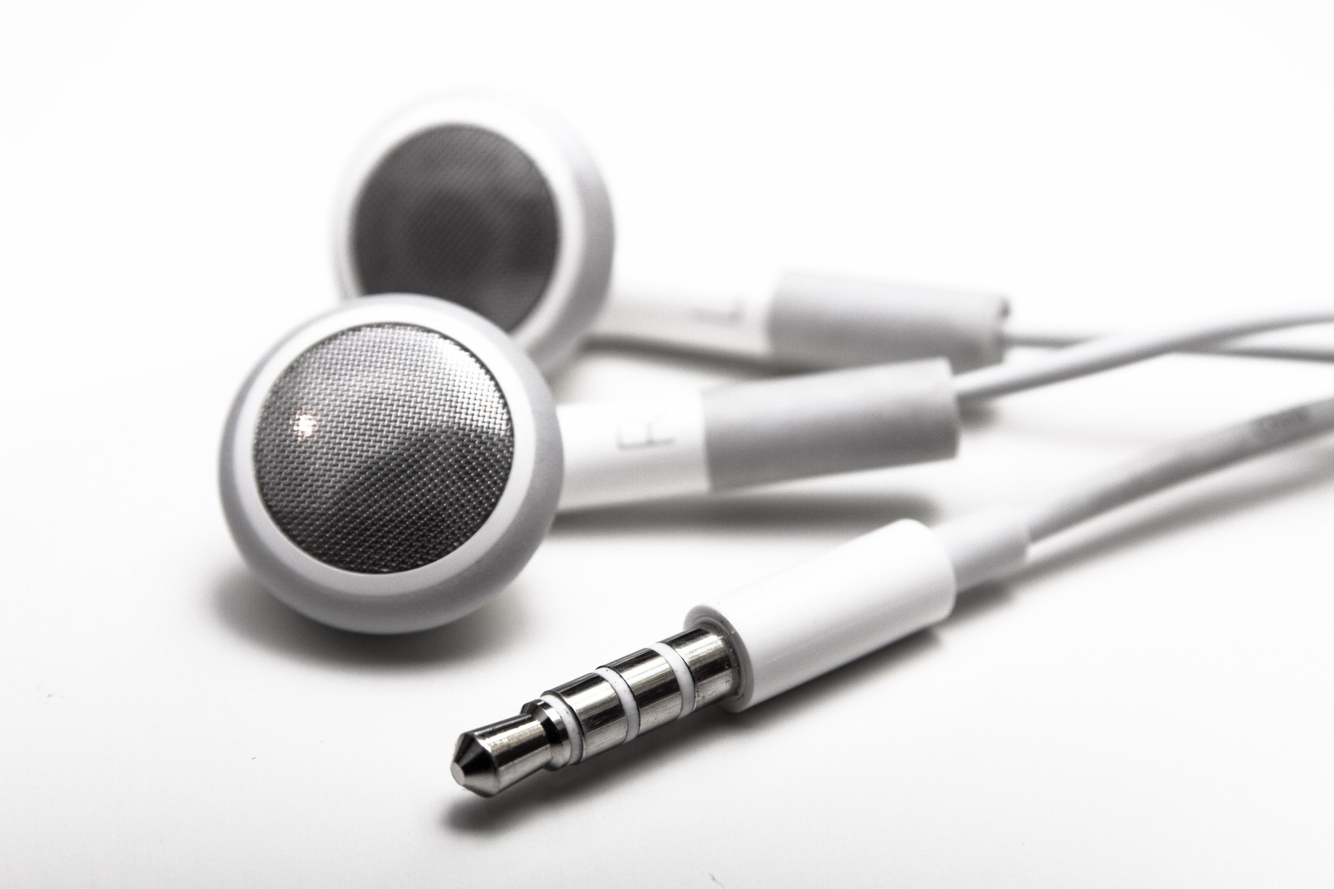 Weiße Kopfhörer auf weißem Hintergrund - wallpaper für das Telefon