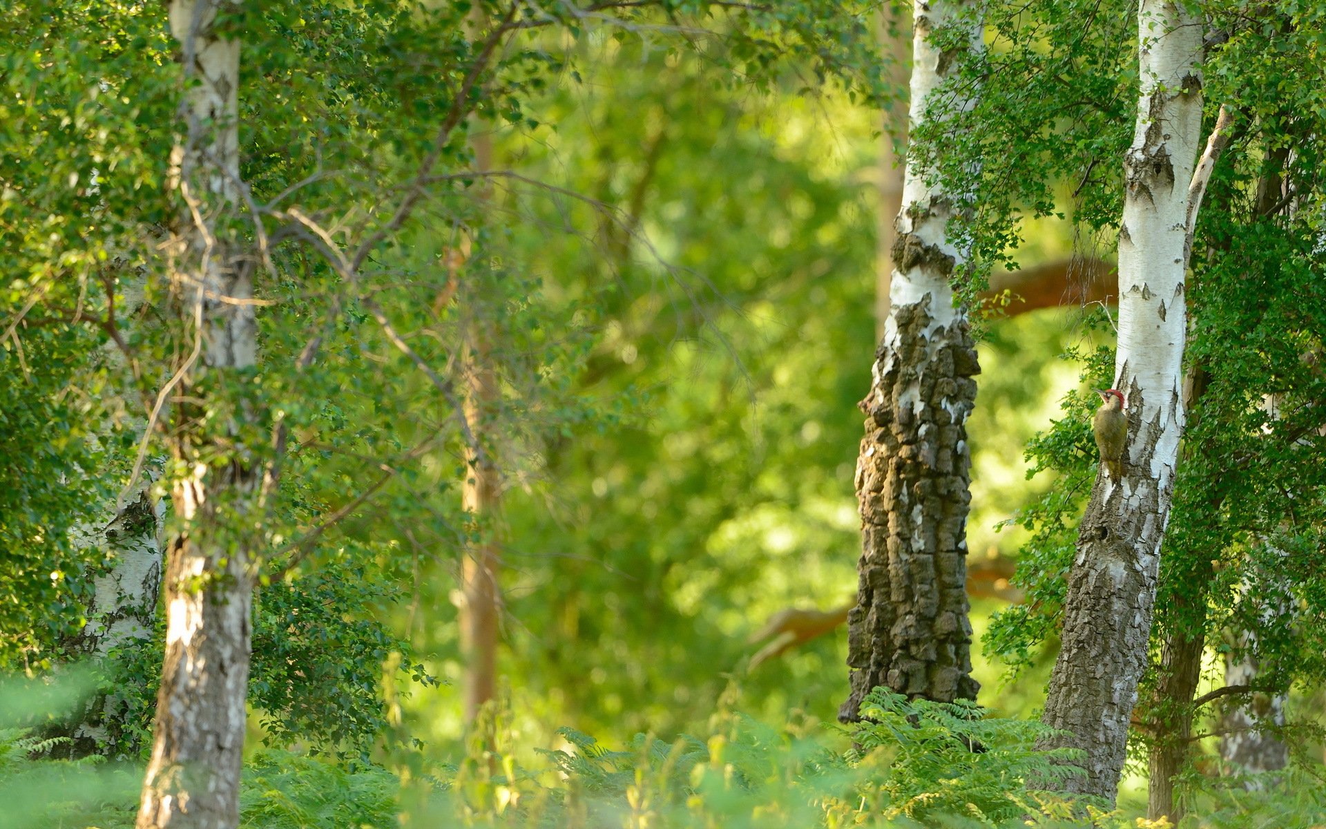 Birken im grünen Sommerwald - desktop-Hintergrund