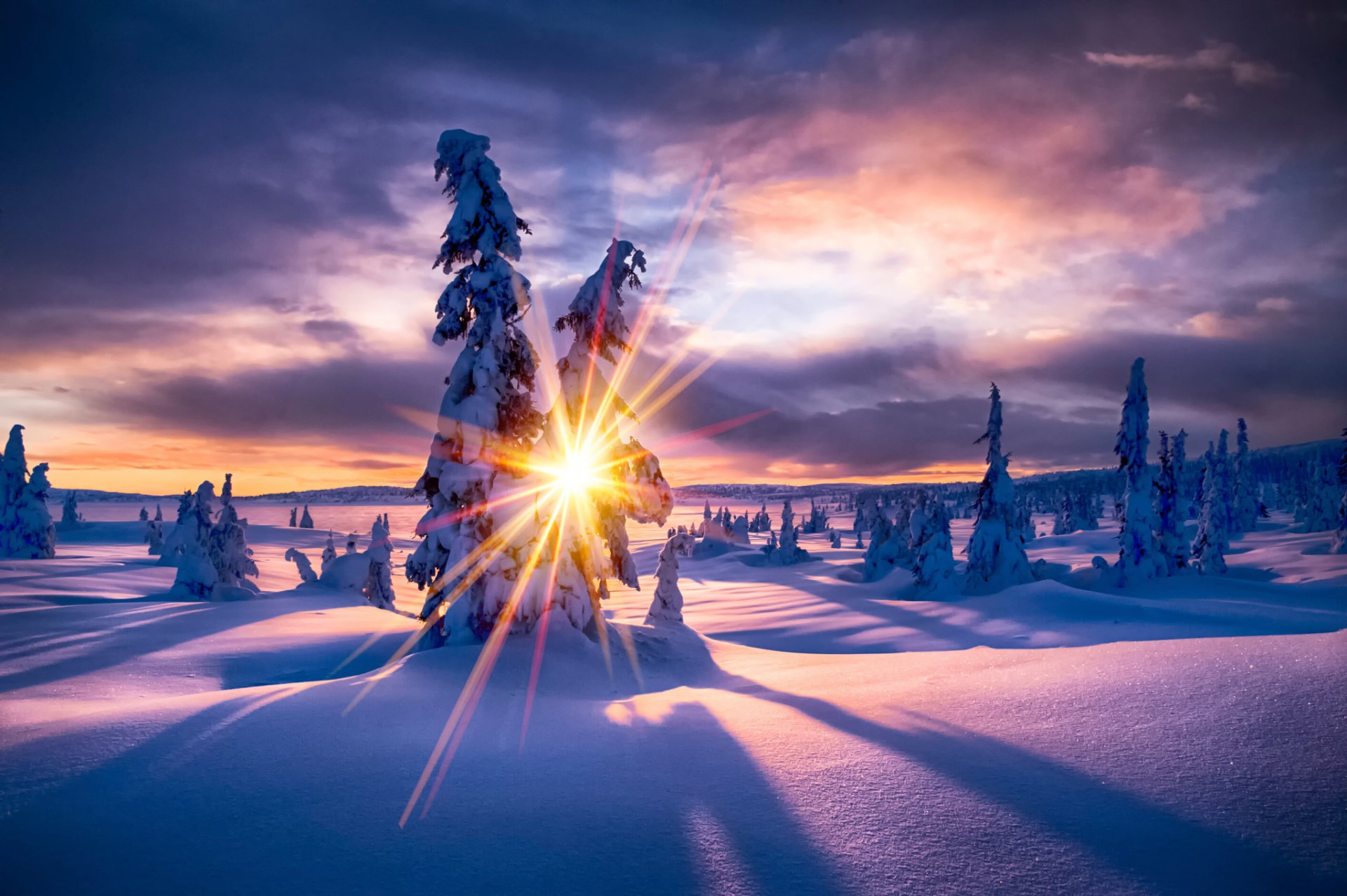 Der Winterwald liegt bei Sonnenuntergang im Schnee - desktop-Hintergrund