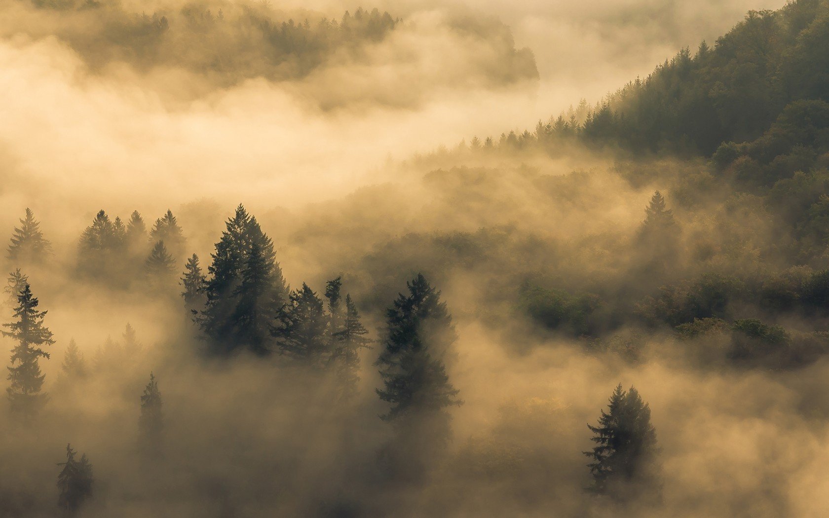 Ein mysteriöser Morgen in einem nebligen Wald - desktop-Hintergrund