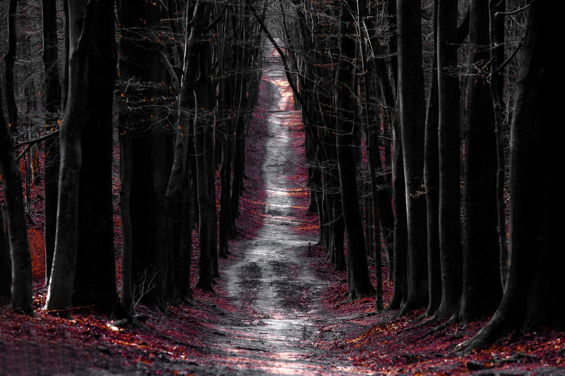 Ein Weg, der durch einen Wald mit Bäumen führt - desktop-Hintergrund