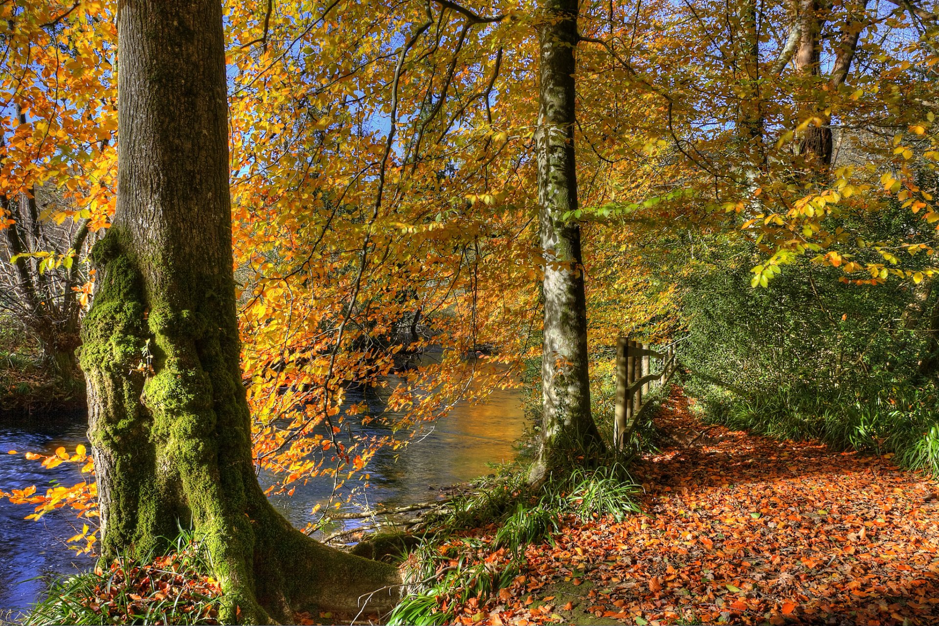 Kennungen:teich, fluss, park, wald, bäume, blätter, herbst