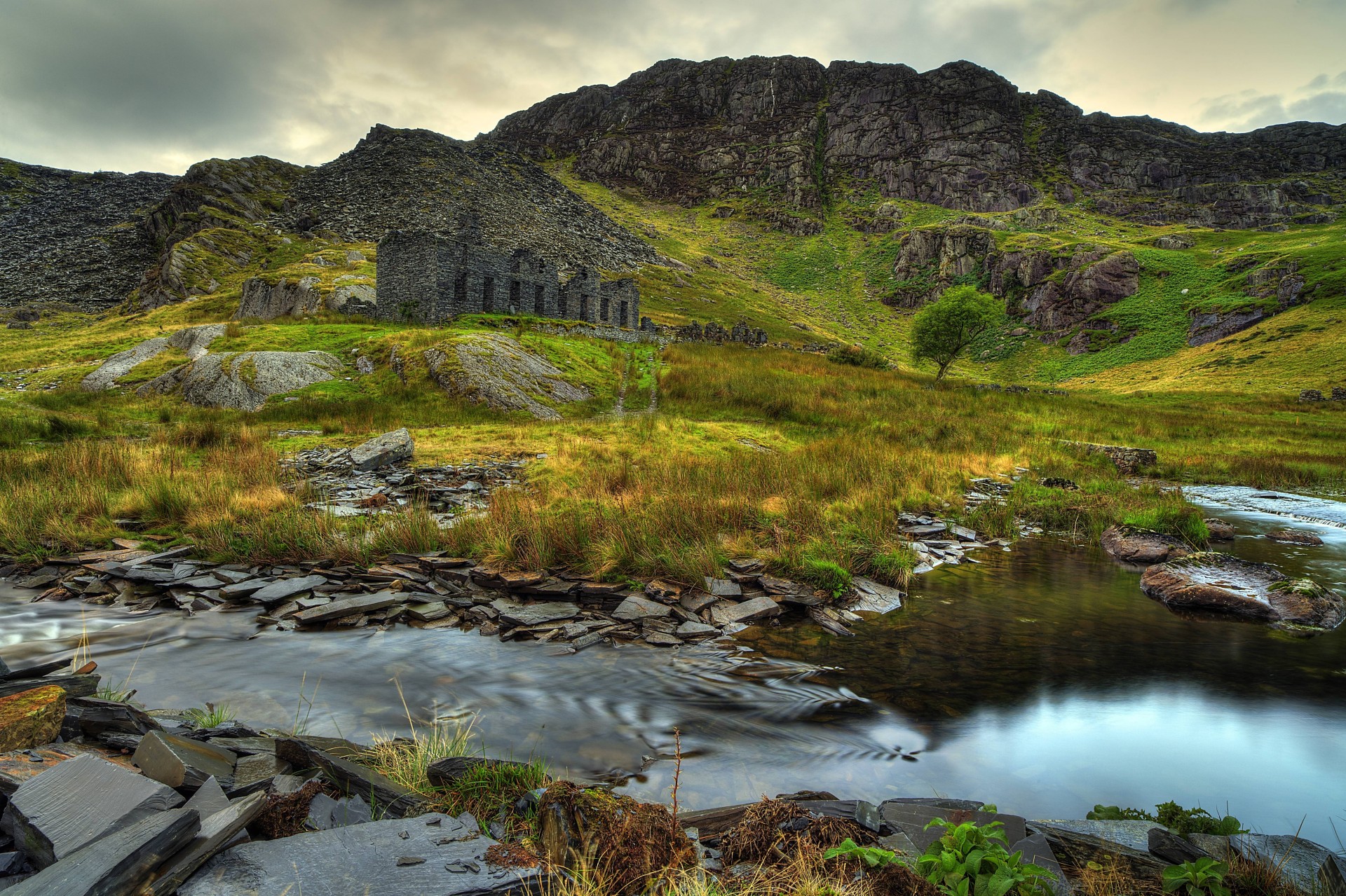Kennungen:landschaft, fluss, ruinen, großbritannien, berge, snowdonia, felsen