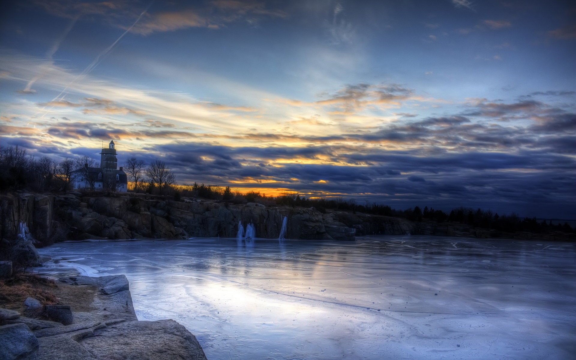 Kennungen:landschaft, haus, fluss, himmel