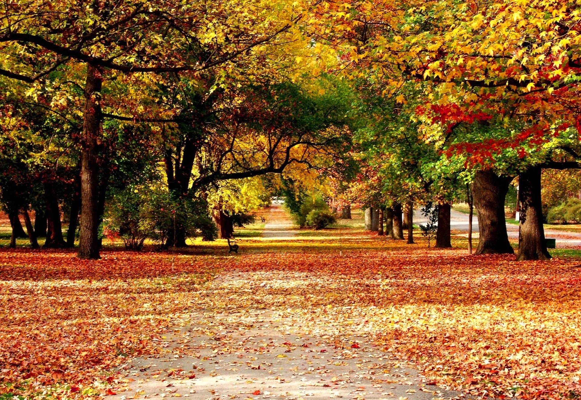 Gasse im Herbst mit gefallenen Blättern - wallpaper für das Telefon