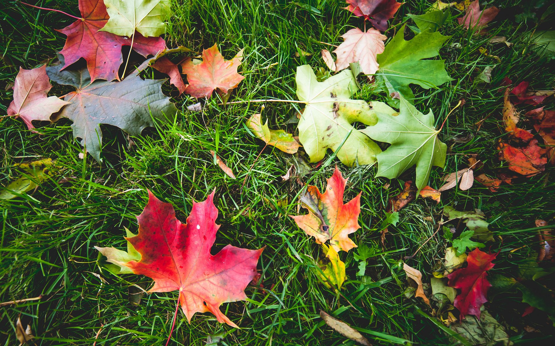 Herbst Ahornblätter auf dem Rasen - wallpaper für das Telefon