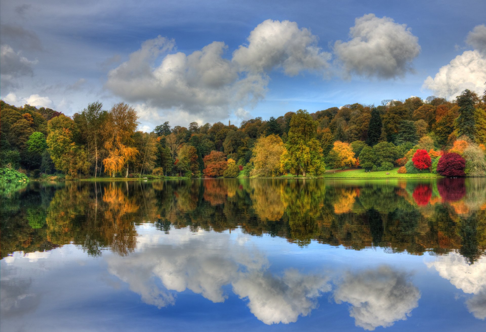 Kennungen:herbst, park, bäume, bunt, laub, himmel, wolken, see, reflexion