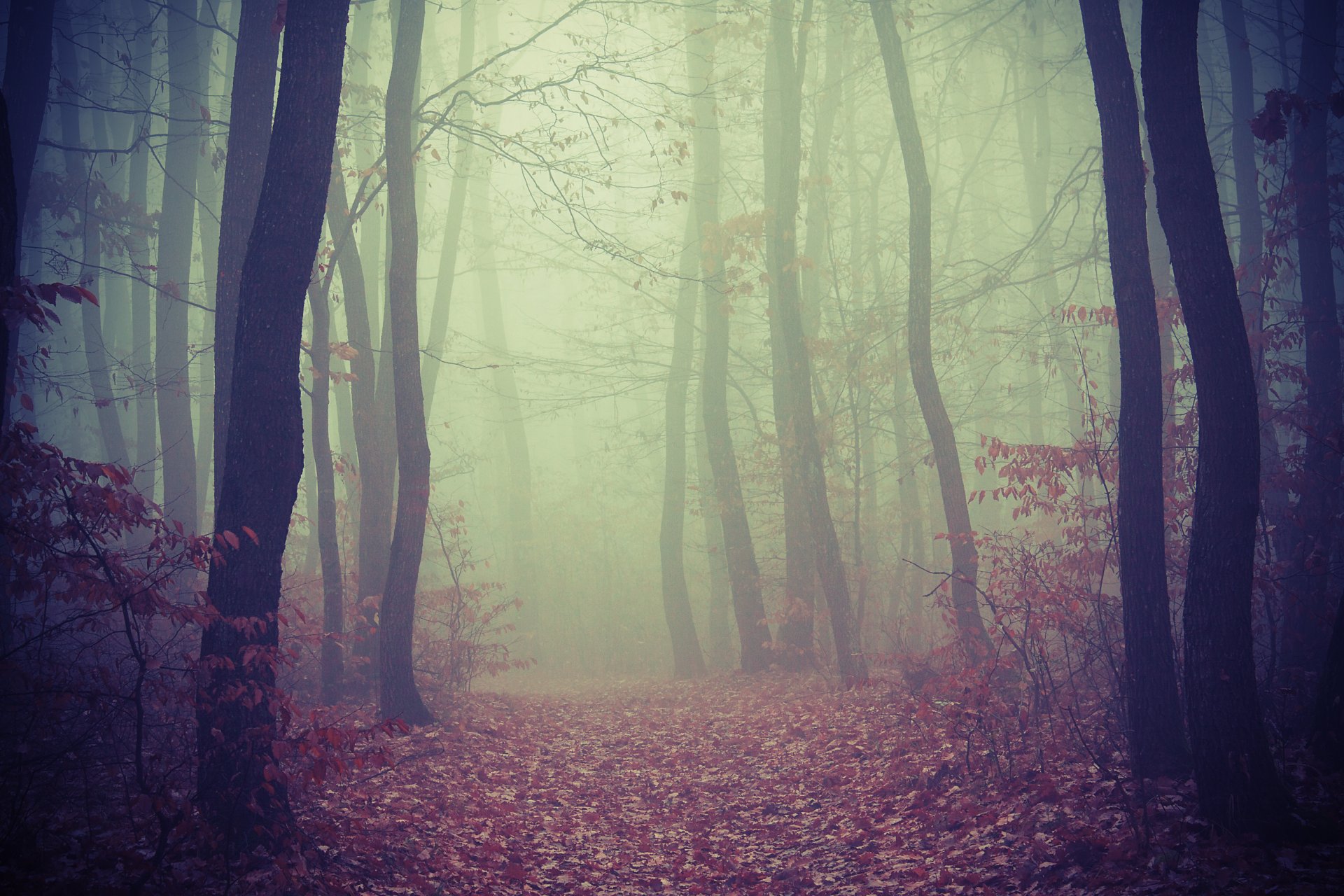Nebelwald mit Herbstweib - wallpaper für das Telefon