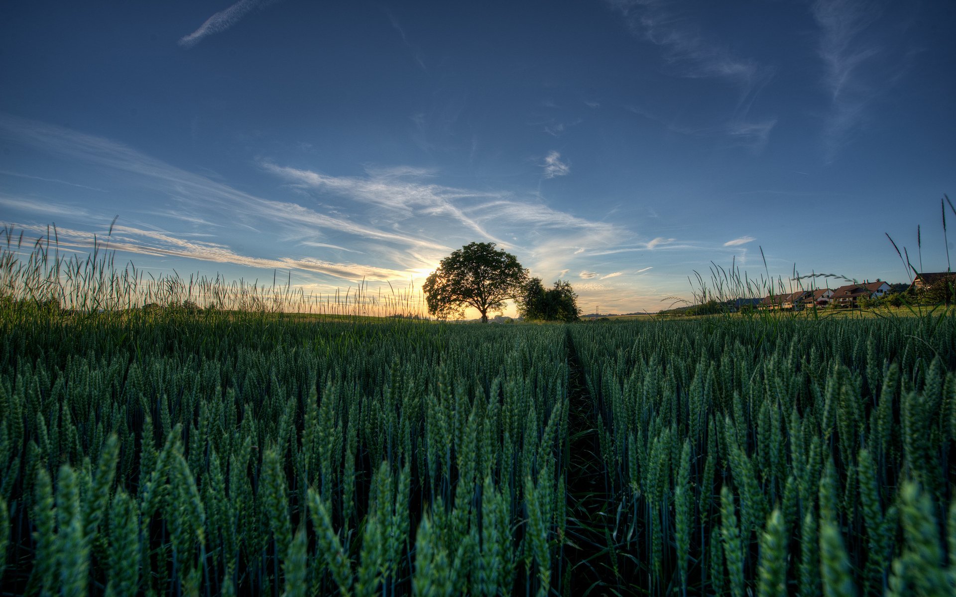 feld ährchen baum landschaft himmel sonne sonnenuntergang gras