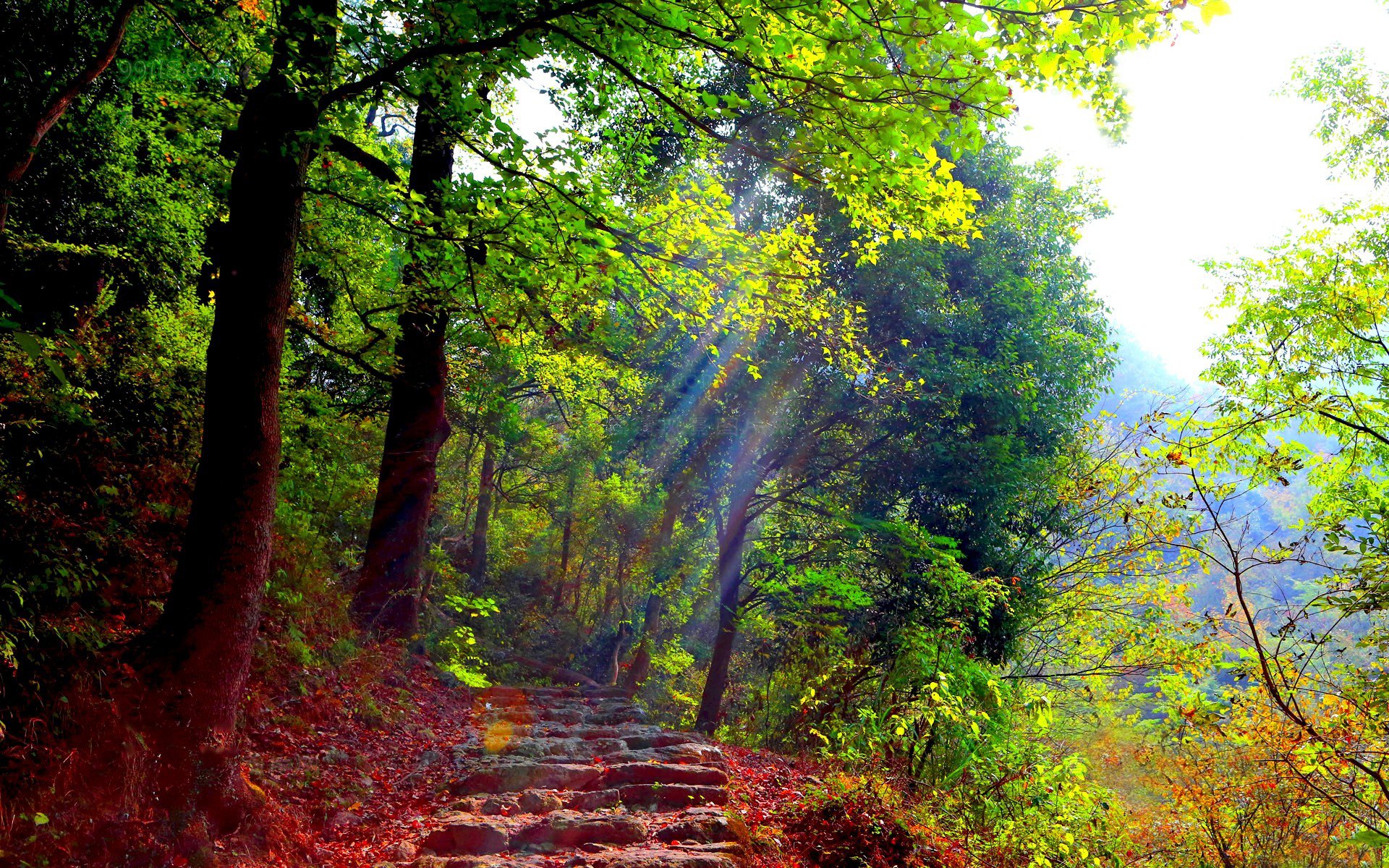 Kennungen:wald, weg, stufen, grün, licht, strahlen