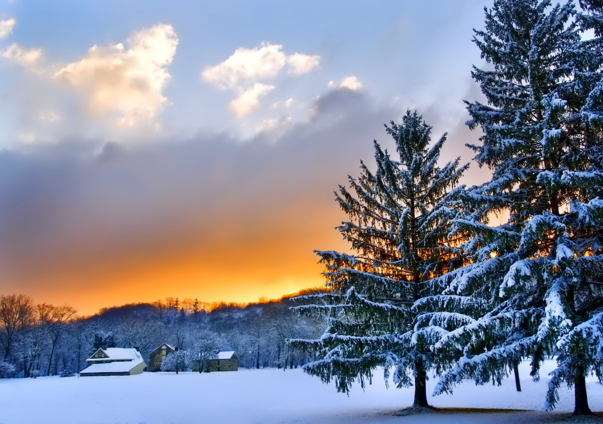 natur landschaft winter schnee bäume sonnenuntergang himmel wolken