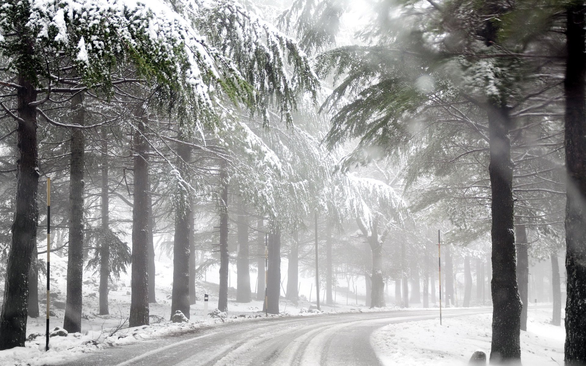 Winterwald, neblige Straße - wallpaper für das Telefon