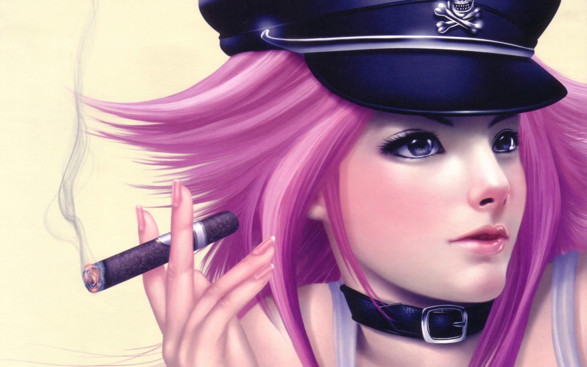 Zeichnung eines rauchenden Mädchens mit lila Haaren - wallpaper für das Telefon