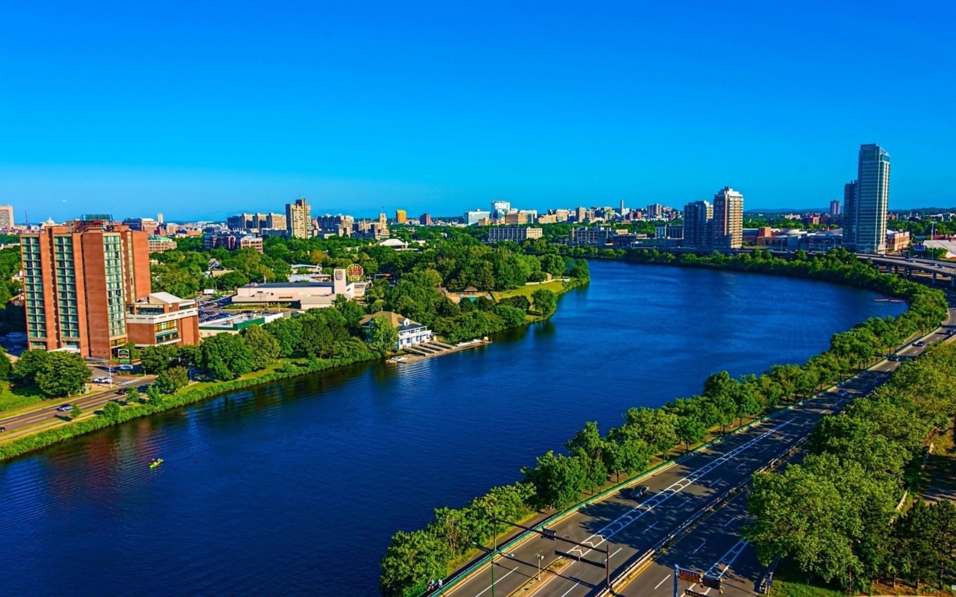 Schöne Sommerstadt am Fluss - desktop-Hintergrund