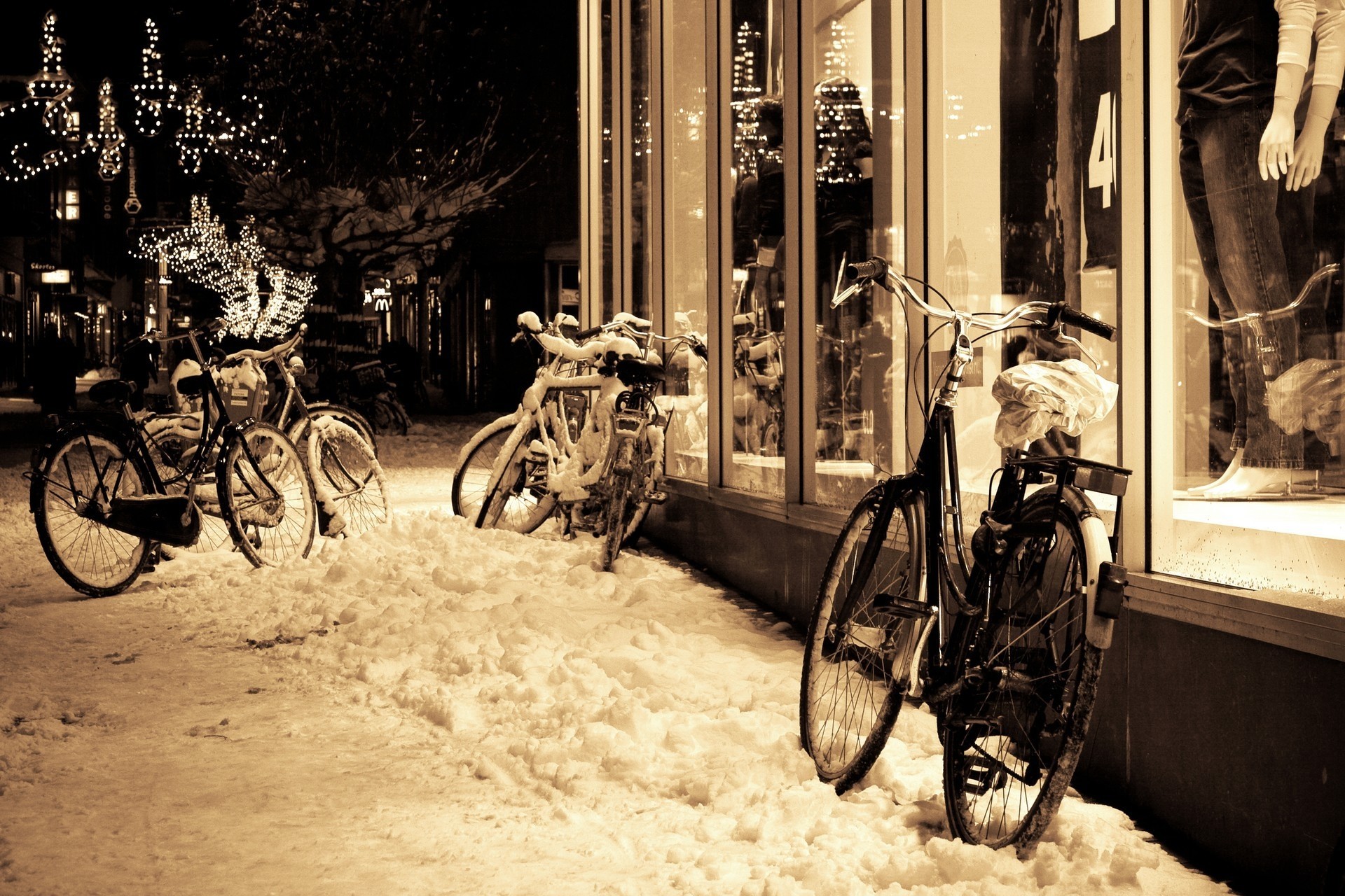 schnee fenster winter fahrrad