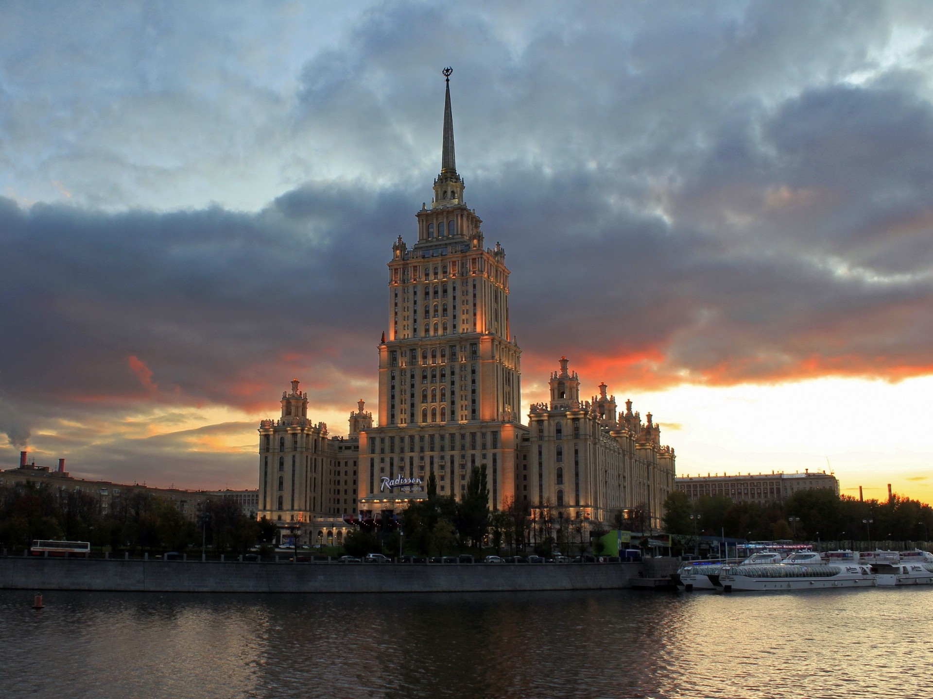 Wolken über abendlichem Moskau - wallpaper für das Telefon