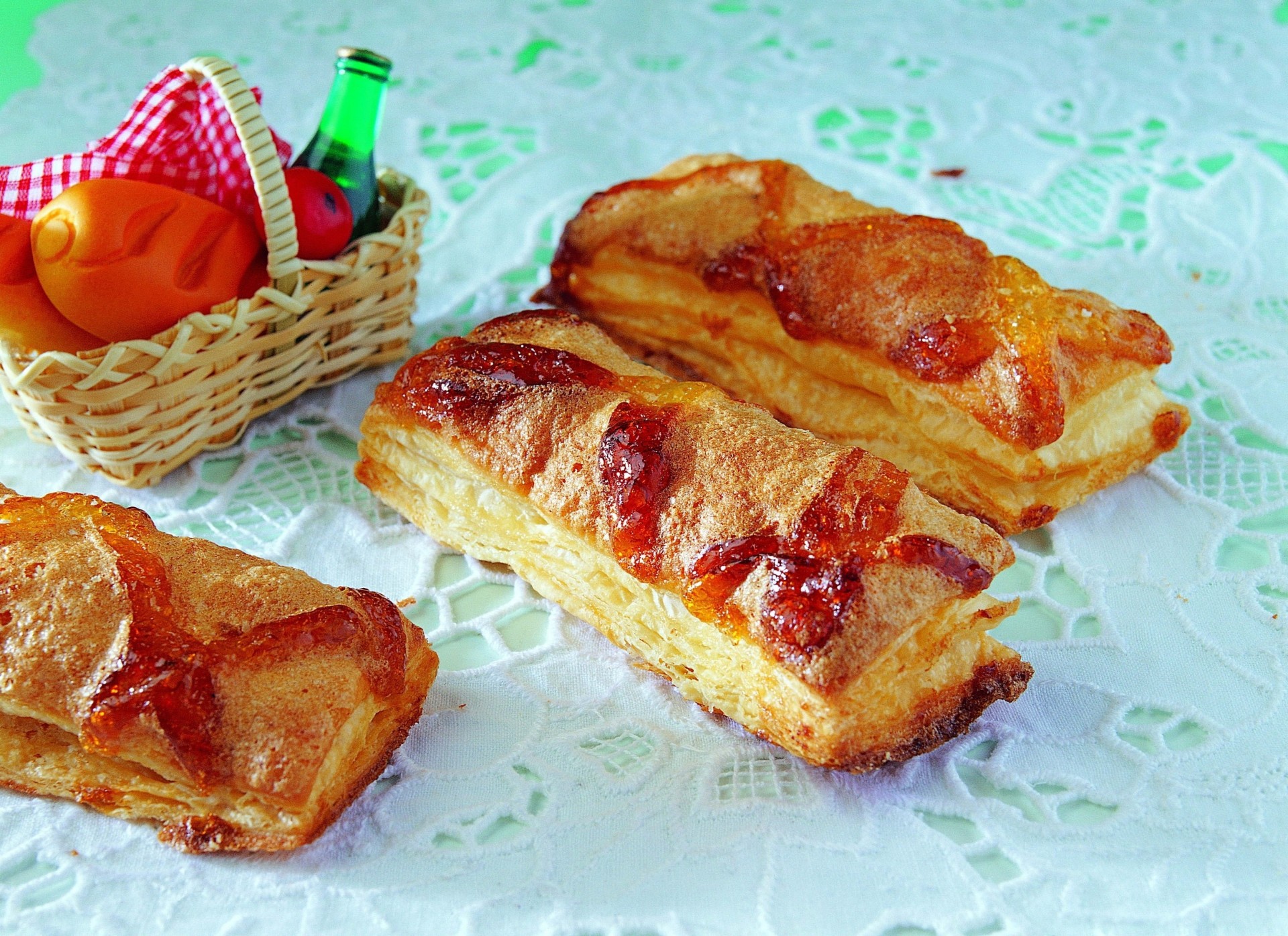 Auf einer bestickten Serviette Kekse mit Marmelade