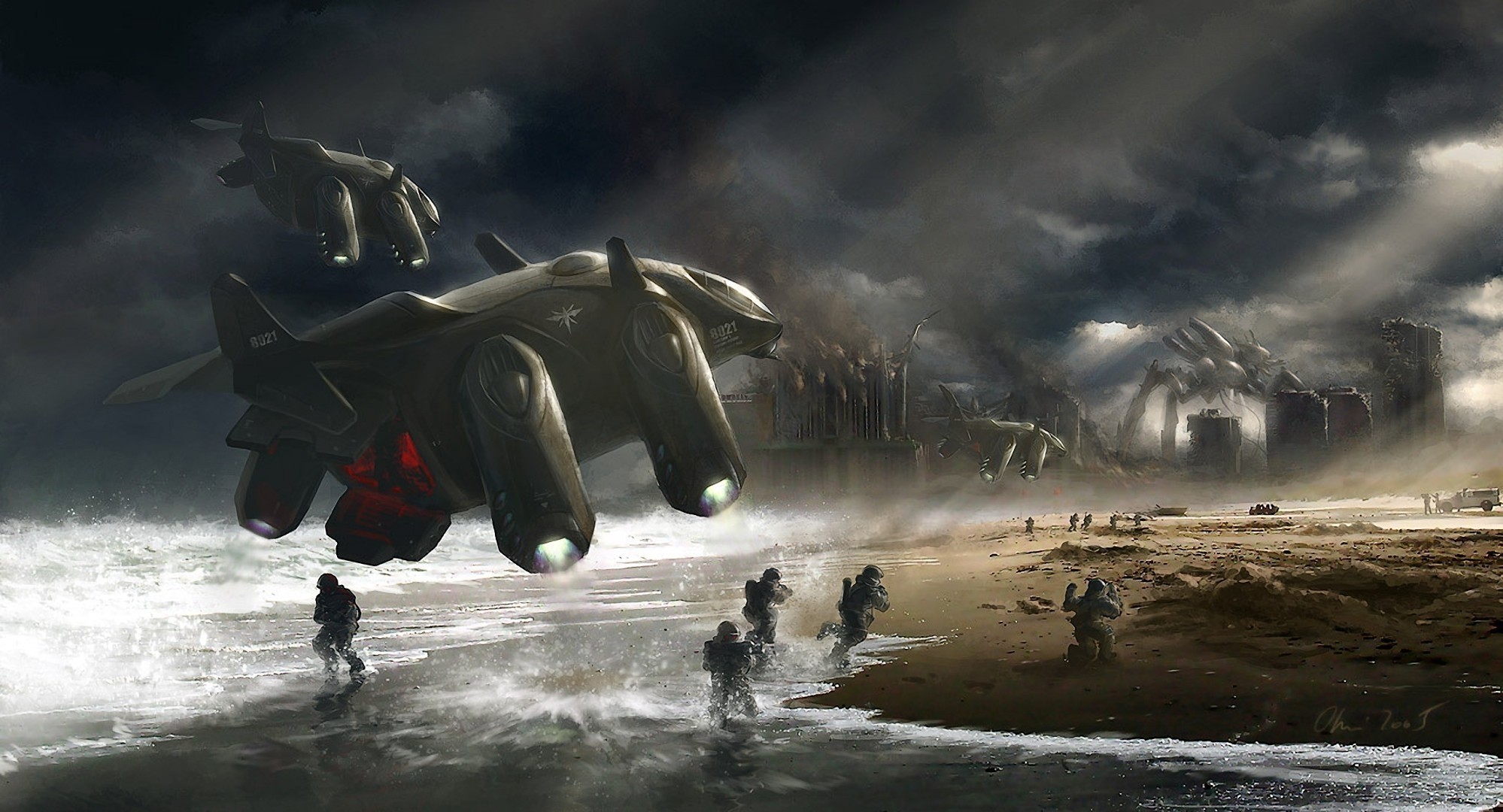 Art Landung kämpft an der Küste - wallpaper für das Telefon