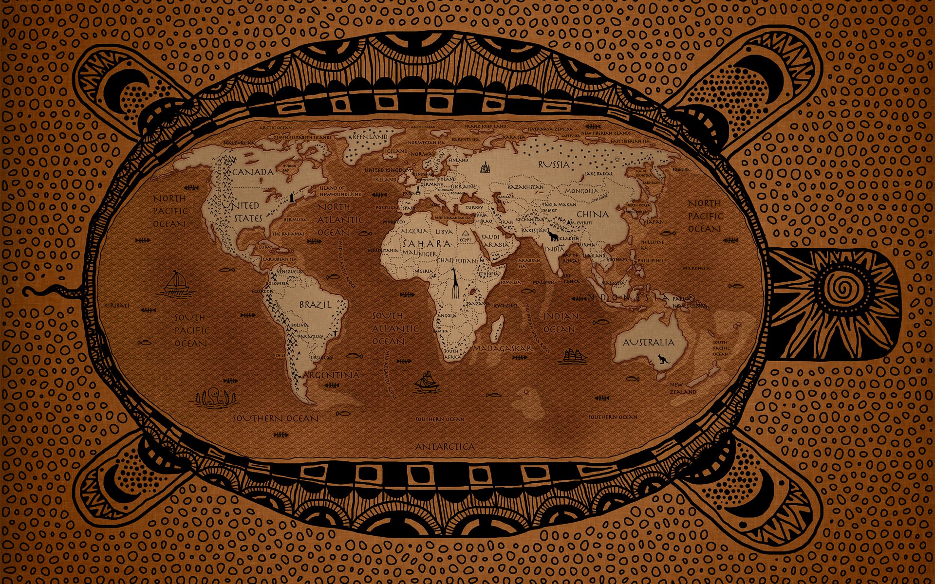 Die Kartenwelt am Körper einer Schildkröte - wallpaper für das Telefon