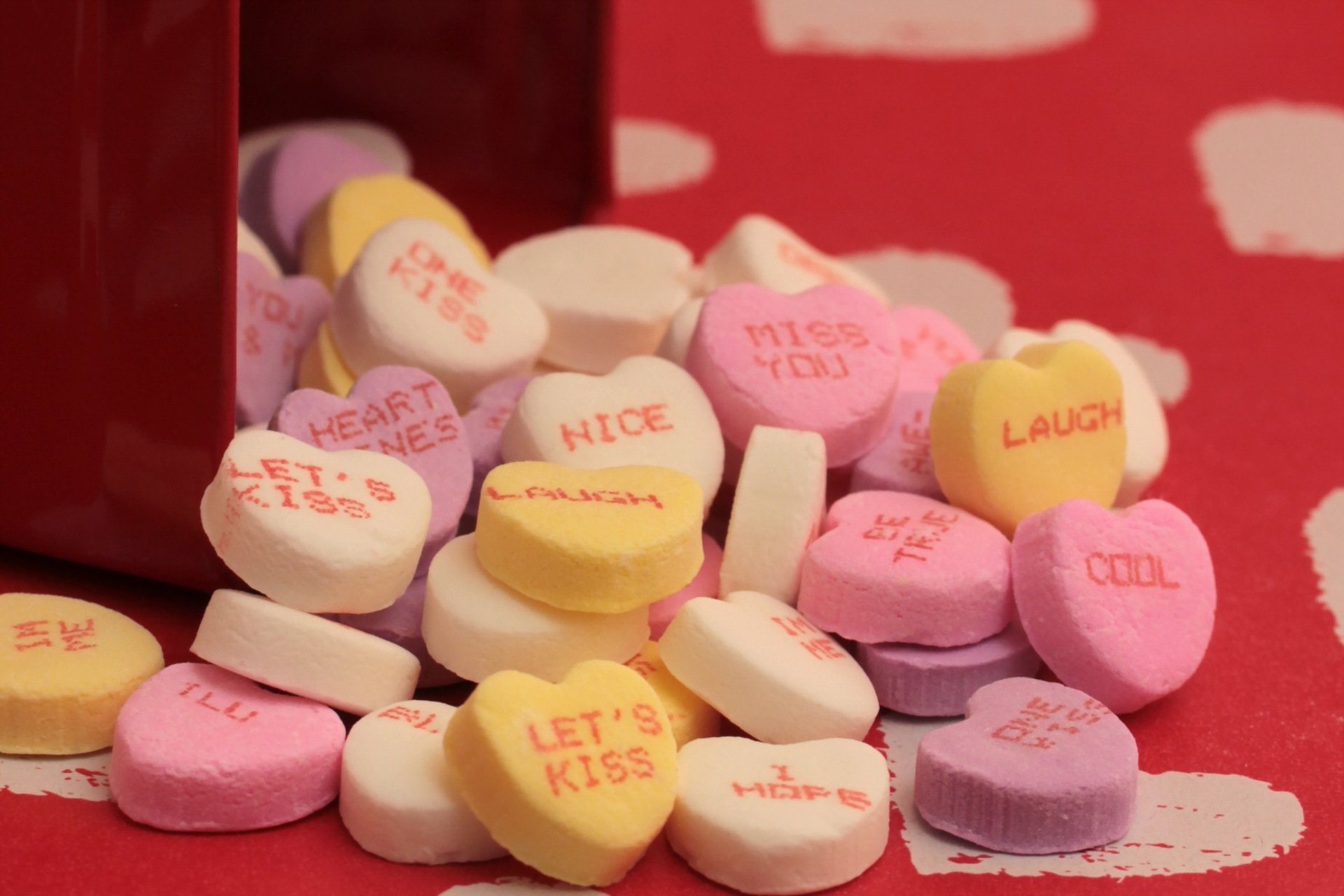 Herzförmige Süßigkeiten zum Valentinstag - wallpaper für das Telefon