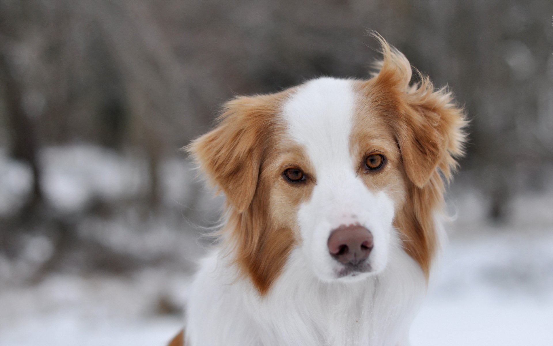 Hübscher Hund hinter Winterhintergrund - wallpaper für das Telefon