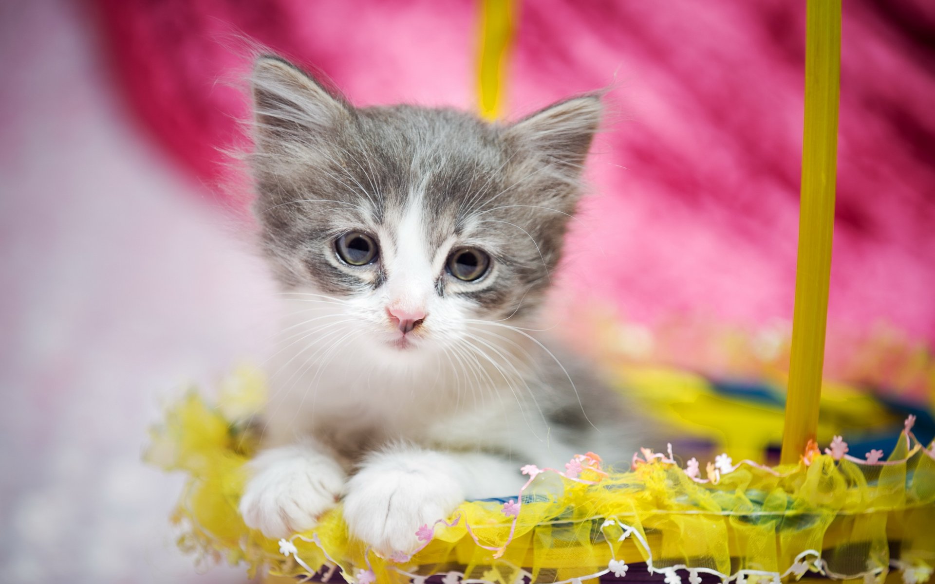 Süßes Kätzchen im Korb. Geschenk - wallpaper für das Telefon