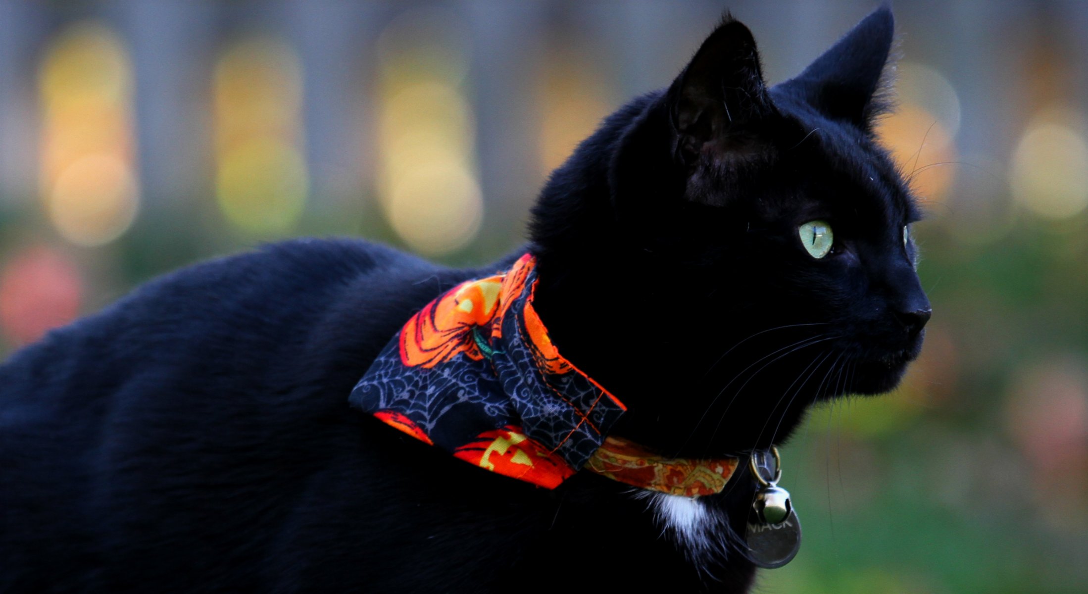 Schwarze Katze in der Natur im Kopftuch - wallpaper für das Telefon