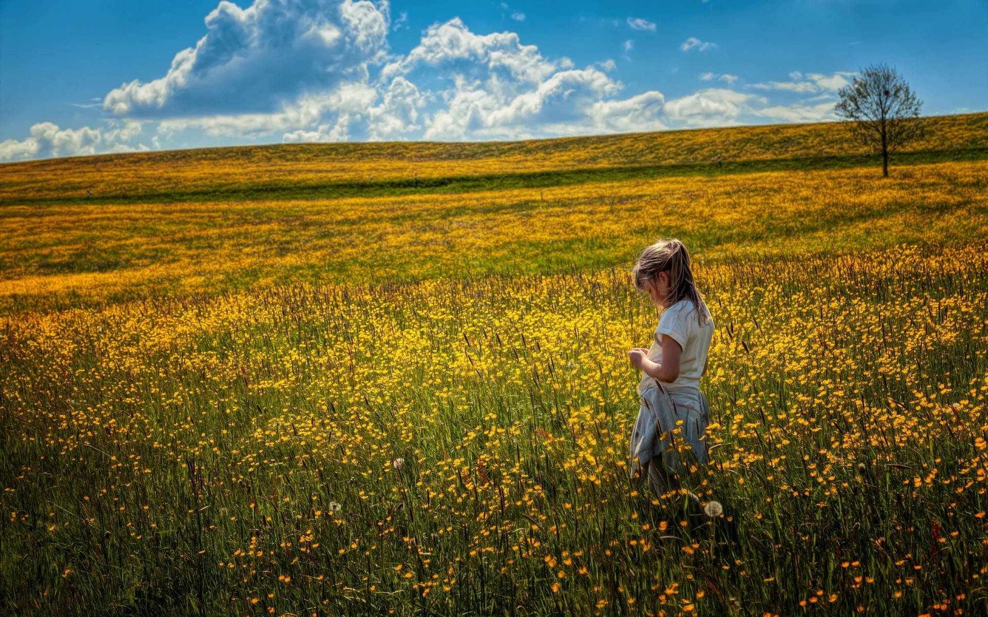 Mädchen im Sommerfeld an einem klaren Tag - desktop-Hintergrund