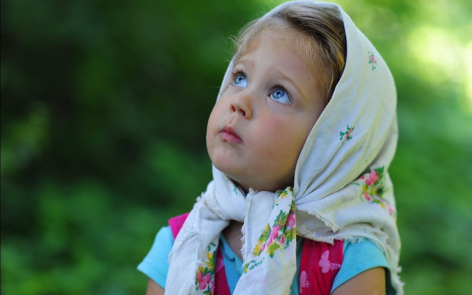 Ein blauäugiges Mädchen im Kopftuch - wallpaper für das Telefon