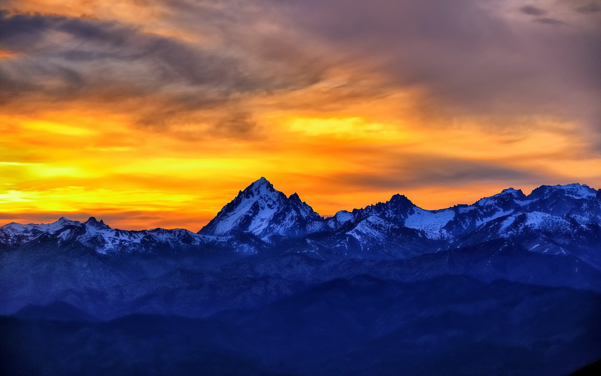Berge vor dem Hintergrund eines feurigen Sonnenuntergangs - desktop-Hintergrund