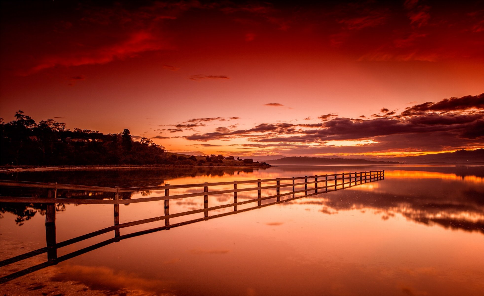 Ein blutroter Sonnenuntergang über dem See. Landschaft - desktop-Hintergrund