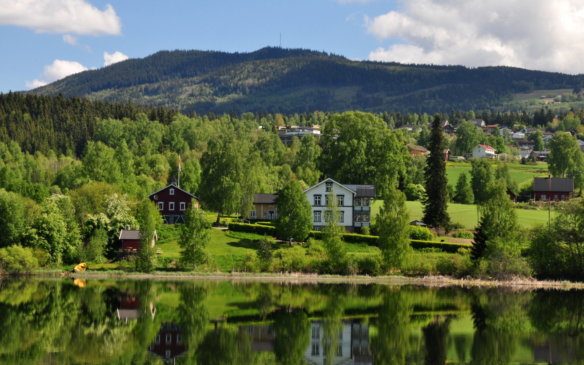 Häuser am Ufer am Wasser - desktop-Hintergrund