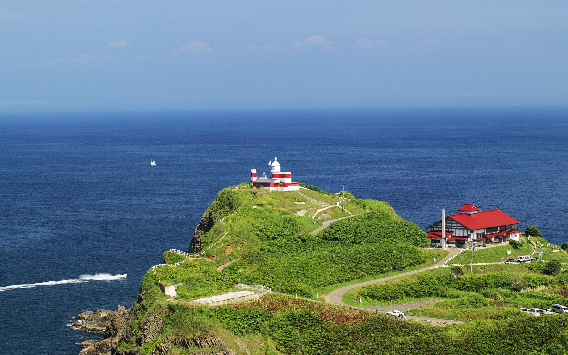 Kennungen:japan, hokkaido, meer, dahl, grüner hügel, häuser
