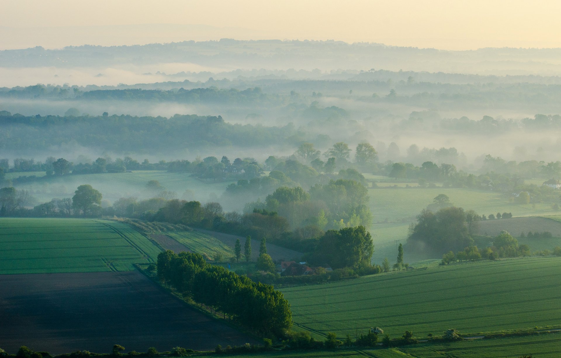 Nebel Morgen Hügel Feld - desktop-Hintergrund