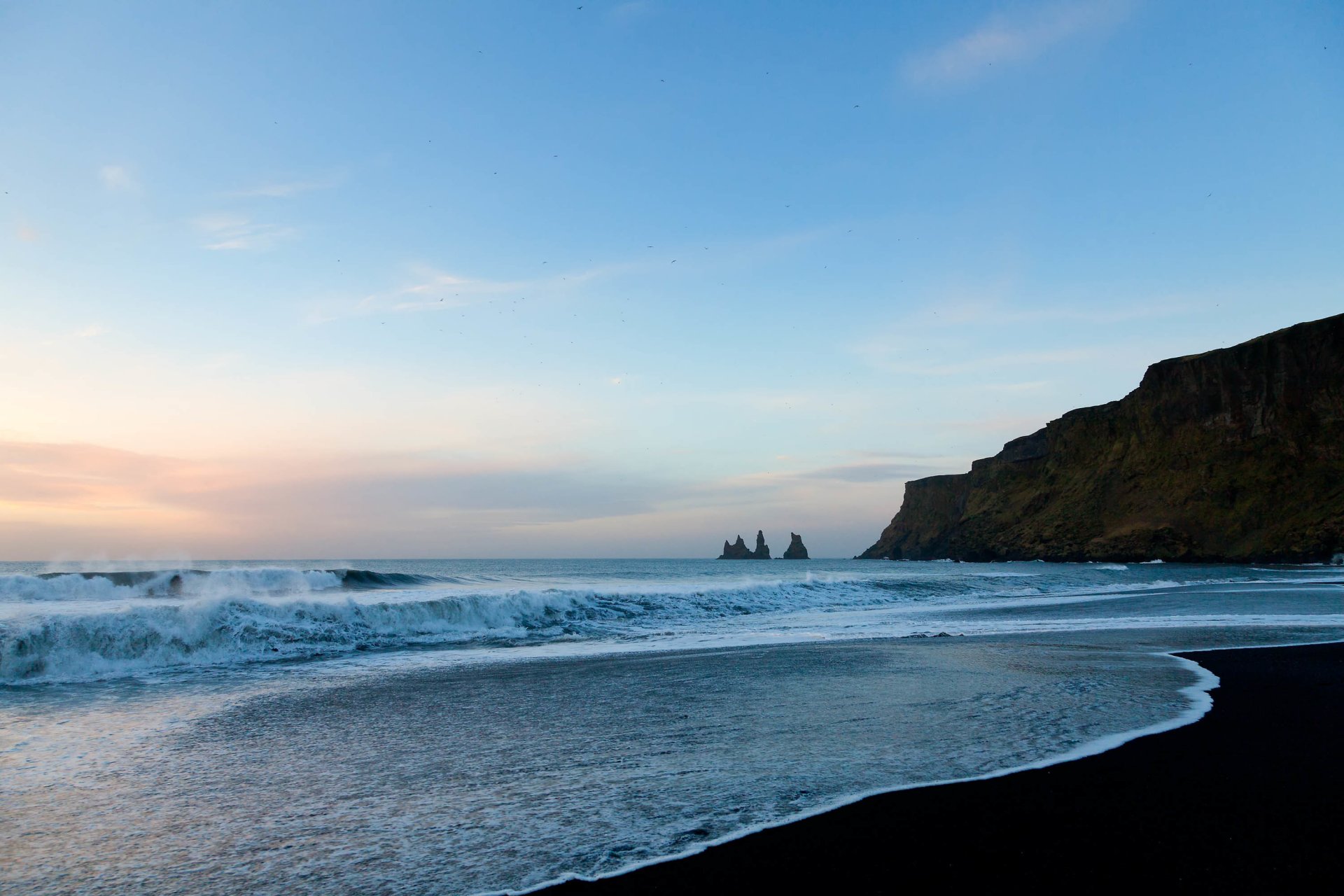 Kennungen:strand, sand, ozean, wasser, wellen, schaum, felsen, himmel, wolken, vögel, horizont