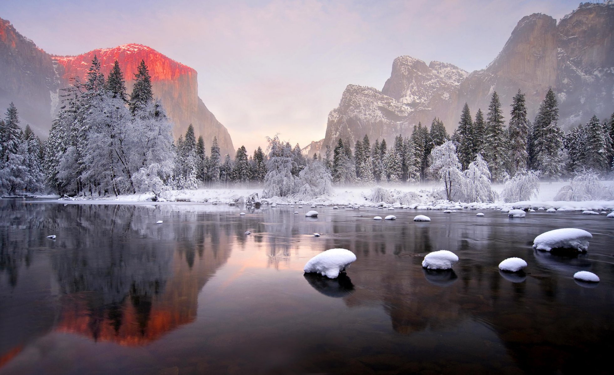 Spiegelbild des Winterwaldes auf dem Wasser - desktop-Hintergrund