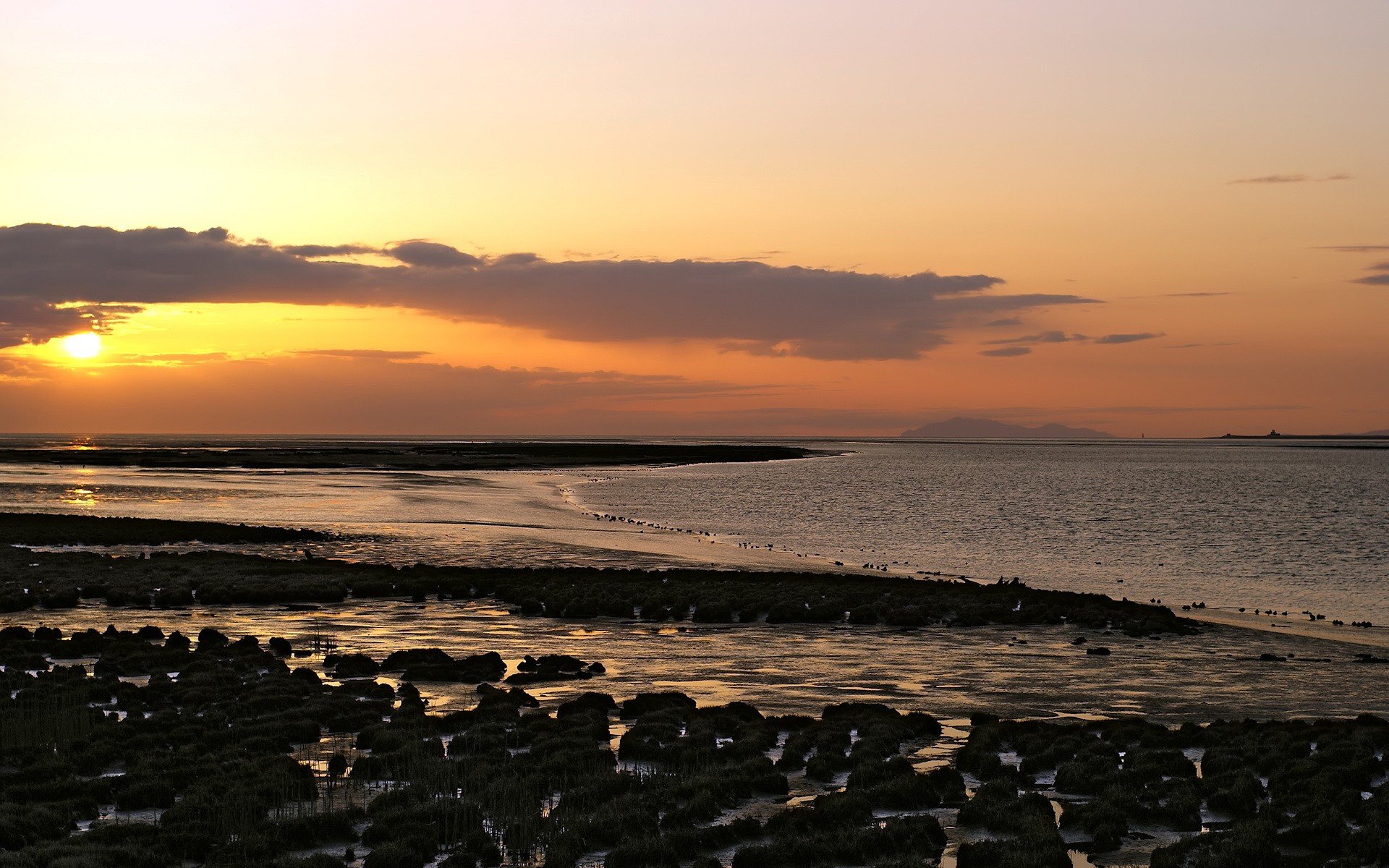 Aufgehende Sonne am Ufer des Sees - wallpaper für das Telefon